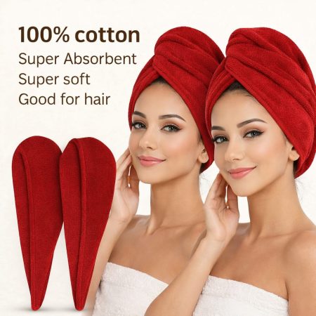 • Hair Wrap Turban (Red) – Cotton (Super Soft Luxury) 380 GSM L 26 * W 10.5 inches