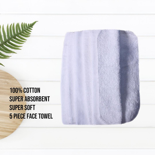 Set Includes 5 Piece (12* 12) Velour Super Soft Cotton Luxury Face Towel
