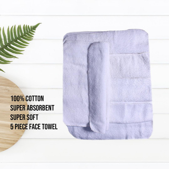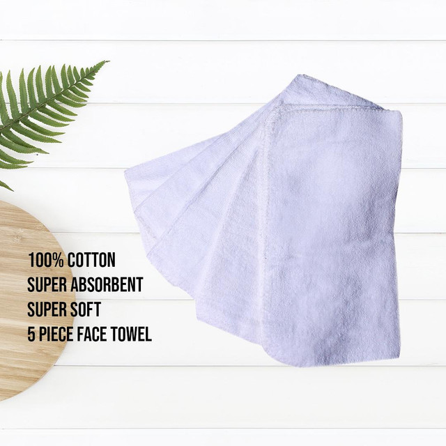 • 100% Cotton - 5 Piece (12* 12) Velour Super Soft Cotton Luxury Face Towel - White