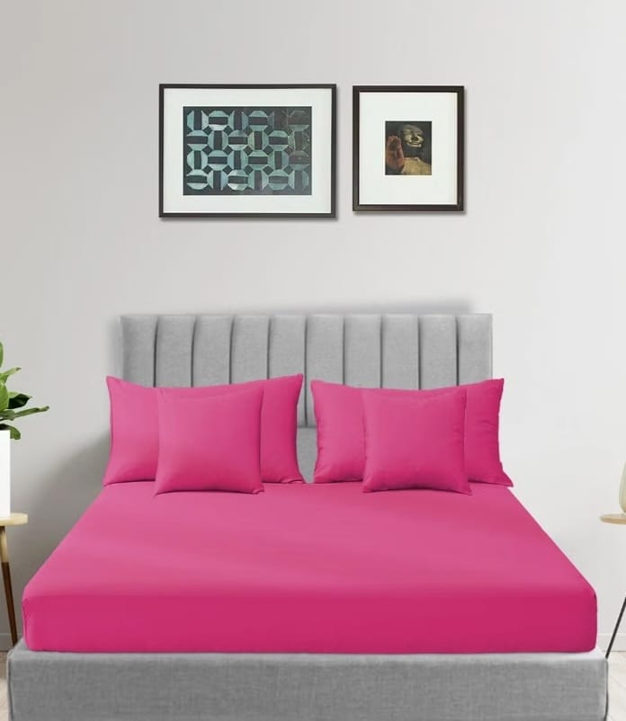 Fitted Bedsheet King Size with 1 Bedsheet 180X200x35 Cm + 2 Pillow Cases + 2 Pillow Covers – Pink