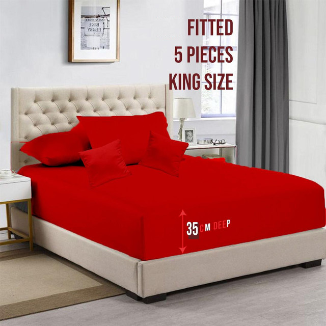 King Size Microfiber Fitted Bedsheet with Pillow & Cushion Covers – 180*200*35 cm – Red