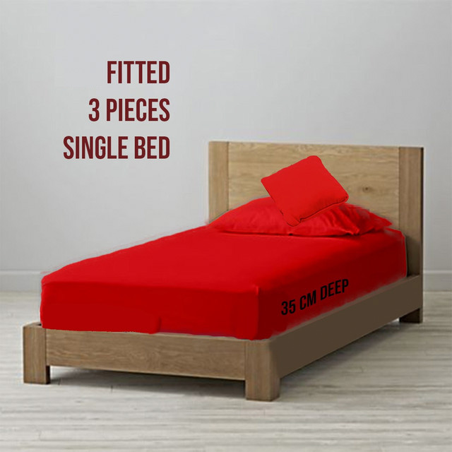 Single Bed Size Microfiber Fitted Bedsheet with Pillow & Cushion Covers – 120*200*35 cm – Red