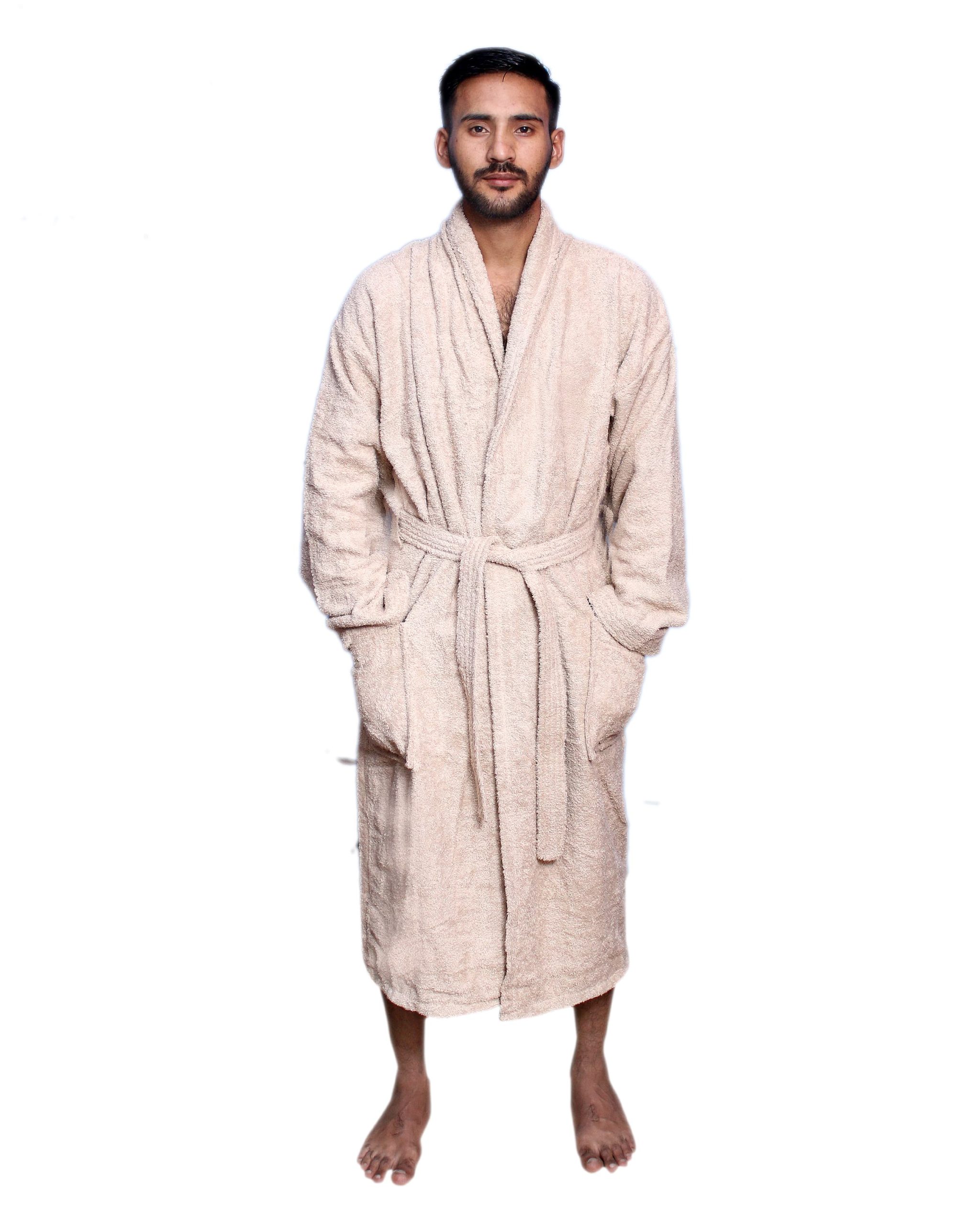 Terry Bathrobe – 100% Cotton Terry Silky Soft Spa Quality Comfort – Shawl Collar & Pocket – Cream