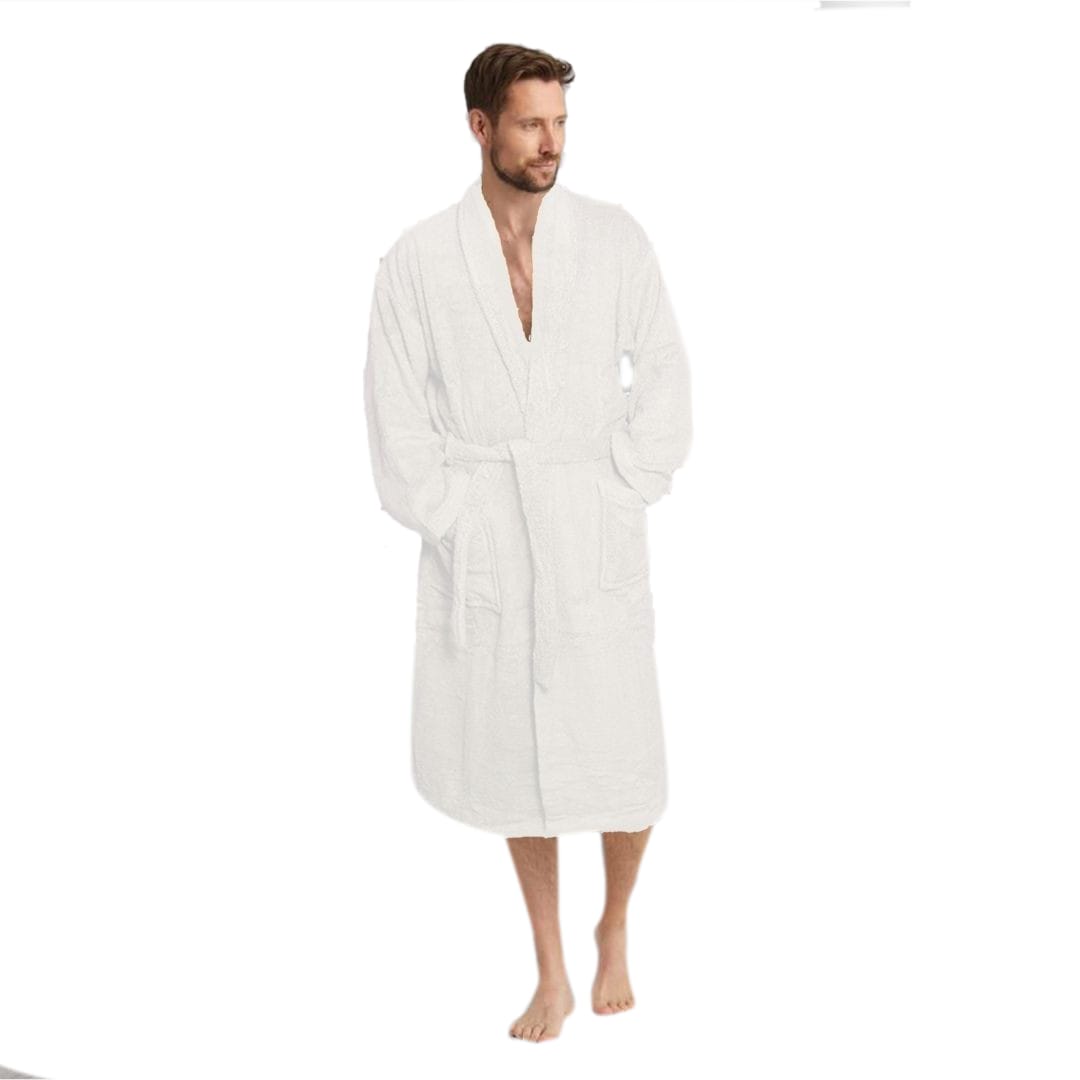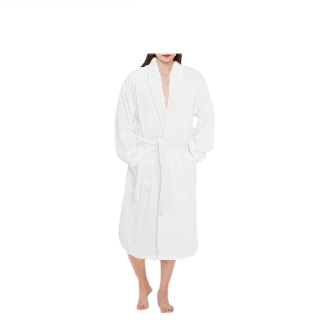 Terry Bathrobe – 100% Cotton Terry Silky Soft Spa Quality Comfort – Shawl Collar & Pocket – White