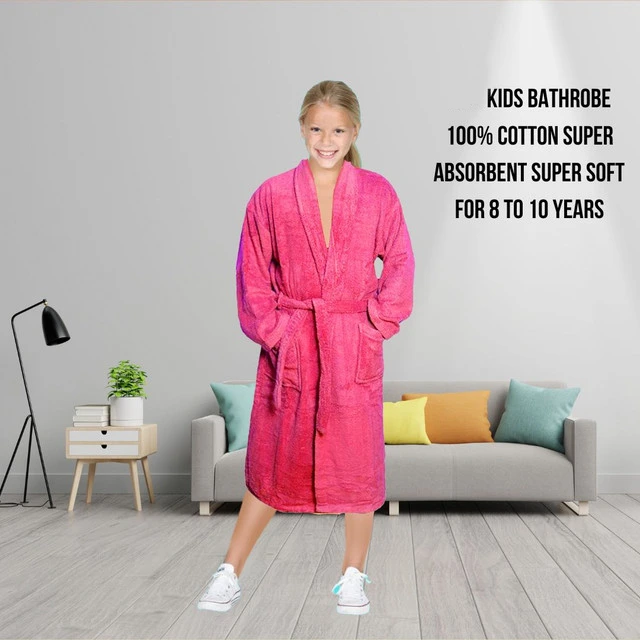Zero Twist Bathrobe – 450 GSM Stable Cotton ( Super Soft Luxury Bathrobe) – Fushia – Kids Size (08 Years To 10 Years)