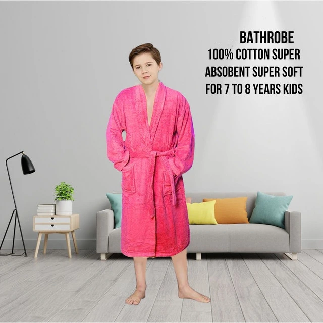Zero Twist Bathrobe - 450 GSM Stable Cotton ( Super Soft Luxury Bathrobe) - Fushia - Kids Size (08 Years To 10 Years)